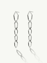 The Amanti Chain Link Earrings feature geometric hexagon pendants - the ancient sacred symbol meaning spiritual consciousness, balance, and male and female energy. Meticulously handcrafted in 18-karat white gold, the clean beveled edges of the interlocking graduating link pendants reflect light from every angle.