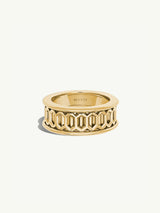 The Amanti Infinity Spinning Ring by Angie Marei is exquisitely handcrafted with great precision in precious 18-karat yellow gold. This piece possesses a mesmerizing repeating geometric pattern of three-dimensional open windows, creating a vignette that glitters and shines when spun around.