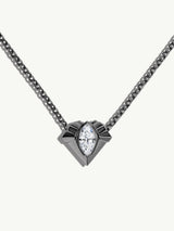 The Alexandria Pendant Necklace is handcrafted of blackened gold and features an elegant brilliant-cut marquise white diamond at its center. Inspired by ancient Egypt, this piece also has inspiration from the Step Pyramid of Djoser, which symbolizes a stairway to heaven and represents our personal journey in life. The pendant is a beautiful reminder that we are all connected to the universe and each other.
