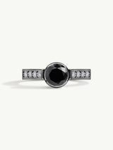 Octavian Lotus Engagement Ring With Brilliant Round-Cut Black Diamond In 18K Blackened Gold