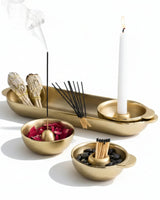 Minimal, sculptural, and quietly elegant, this set is designed to feel at home in any altar or prayer space. Its clean lines and luminous finish make it both a functional ritual object and a refined decorative piece.