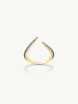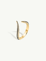 The Ayla Arabesque Ring by Angie Marei is a captivating piece that seductively wraps around the wearer's finger. This gorgeous ring is crafted from stunning 18-karat yellow gold and features sparkling pavé-set white diamonds that catch the eye and reflect the light perfectly. Detailed with black enamel.