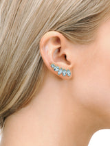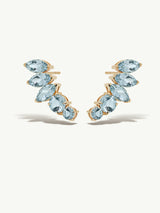 The Isadora Earrings by Angie Marei feature brilliant-cut round and marquise-shaped blue Aquamarine gemstones in luxurious 18-karat yellow gold prong settings. These versatile earrings can be worn in two ways.