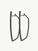Anything but innocent, our Lilith Studded Hoop Earrings by designer Angie Marei offer a bold and fierce take on classic hoops. Meticulously handcrafted in sterling silver and polished to a mirror-like perfection, these earrings boast graphic raised studs on the inside and a sleek knife-edge exterior that captures and reflects light from every angle. With their unique design and captivating allure, these earrings are must-have statement pieces for Fearless Femme Fatales who dare to flaunt their bold style from day to night.