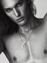 Minimalist and sleek, with ultra-smooth lines that catch the eye. The blade-like Diaboli Kill Monogram Tag Pendant by Angie Marei is hand-crafted from solid platinum precious metal and meticulously hand-polished with attention to detail.