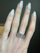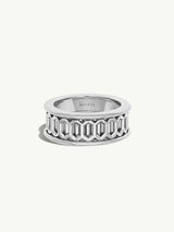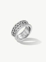 Spinning rings, also known as prayer rings or worry rings, originated from ancient Tibetan prayer wheels. This piece comprises two bands– an inner and center band that spins around. Spinning rings are believed to create a calm and meditative state for the wearer.