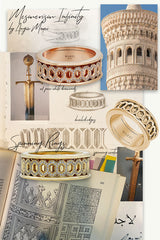 Inspired by extraordinary ancient Arabesque and Islamic decorative arts, Marei designed this timeless piece with a unique architectural structure that makes an impression of unending repetition that symbolizes infinite life. In Islamic art, the figure of the circle represents unity and the ultimate source of all diversity in creation. This use of sacred geometry is believed to reflect the language of the Universal Higher Power by reminding us to reflect on the greatness of our creation.