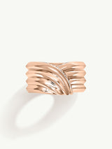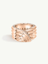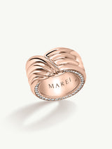 Strikingly elegant and statuesque, the Pharaoh I Pavé-Set Brilliant White Diamond Ring by Angie Marei is impeccably handcrafted from luxurious solid 18-karat rose gold. This original design features a smooth, sculptural, incised surface that seductively wraps around the entire piece. Sparkling white diamond-accented edges unveil unexpected brilliance, fire, and scintillation.