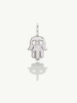 A timeless symbol of divine protection and strength, the Hamsa Talisman Charm Pendant radiates spiritual power and grace. Revered across cultures, the open palm—anchored by a brilliant white diamond—serves as a talisman of blessing, resilience, and sacred guardianship.
