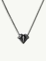 The Alexandria Pendant Necklace by Angie Marei features a gorgeous art deco-inspired pendant with pavé-set brilliant white diamonds on a gleaming round cable chain handcrafted in 18-karat blackened gold. In this piece, Marei takes inspiration from the Step Pyramid of Djoser of Ancient Egypt that ascended upwards from the ground towards the sky, symbolizing a stairway to heaven.