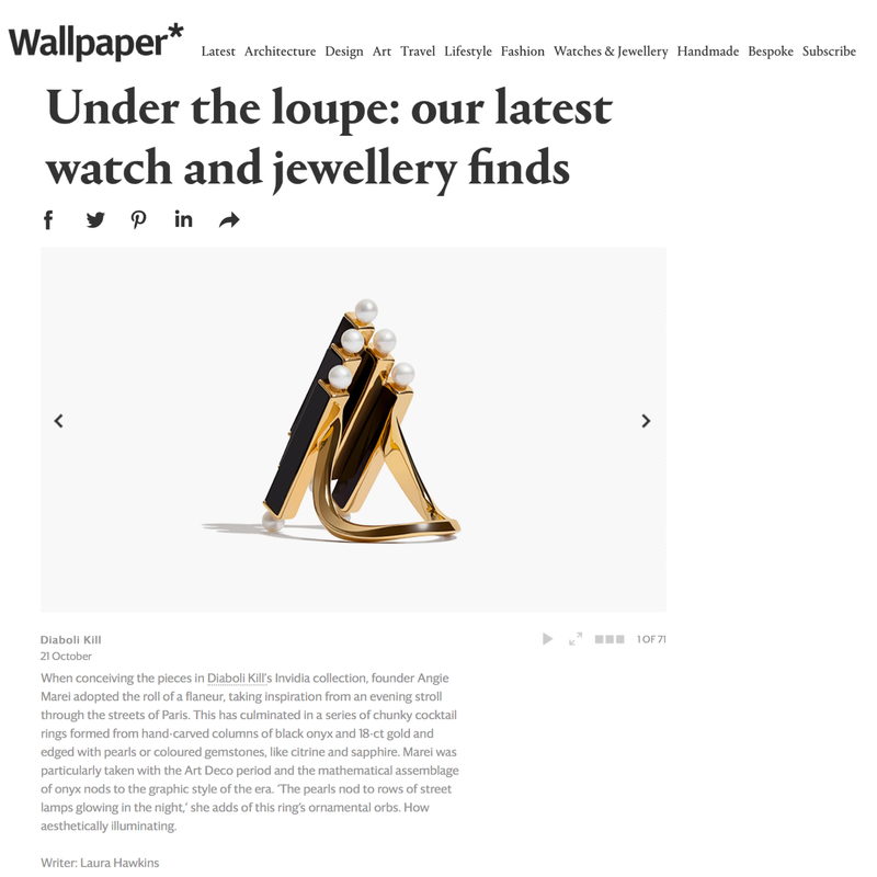 The Invidia Black Onyx Column & Pearl Ring by Angie Marei is exquisitely hand-crafted in 18-karat yellow gold and features black onyx and white pearls. This beautiful architectural ring combines the opulence and glamour of the Art Deco era with the marvelous jewels of the Ancient Egyptian royals.