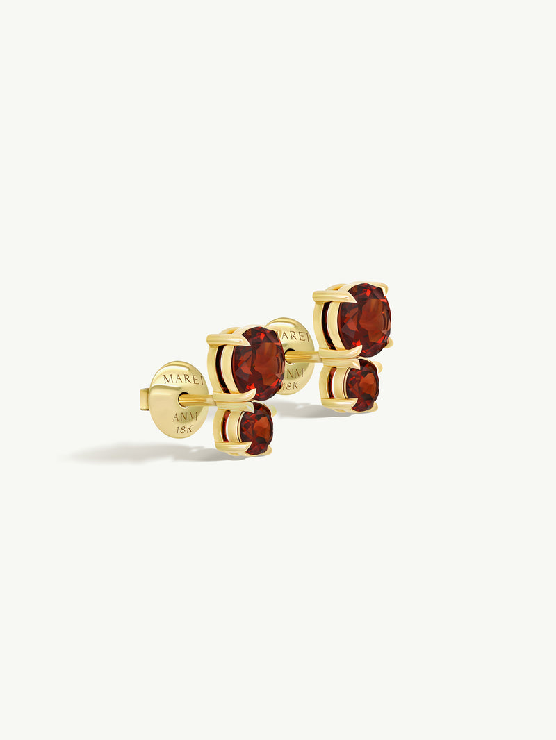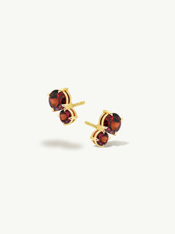 Isadora Two-Stone Stud Earrings With Red Garnets In 18K Yellow Gold