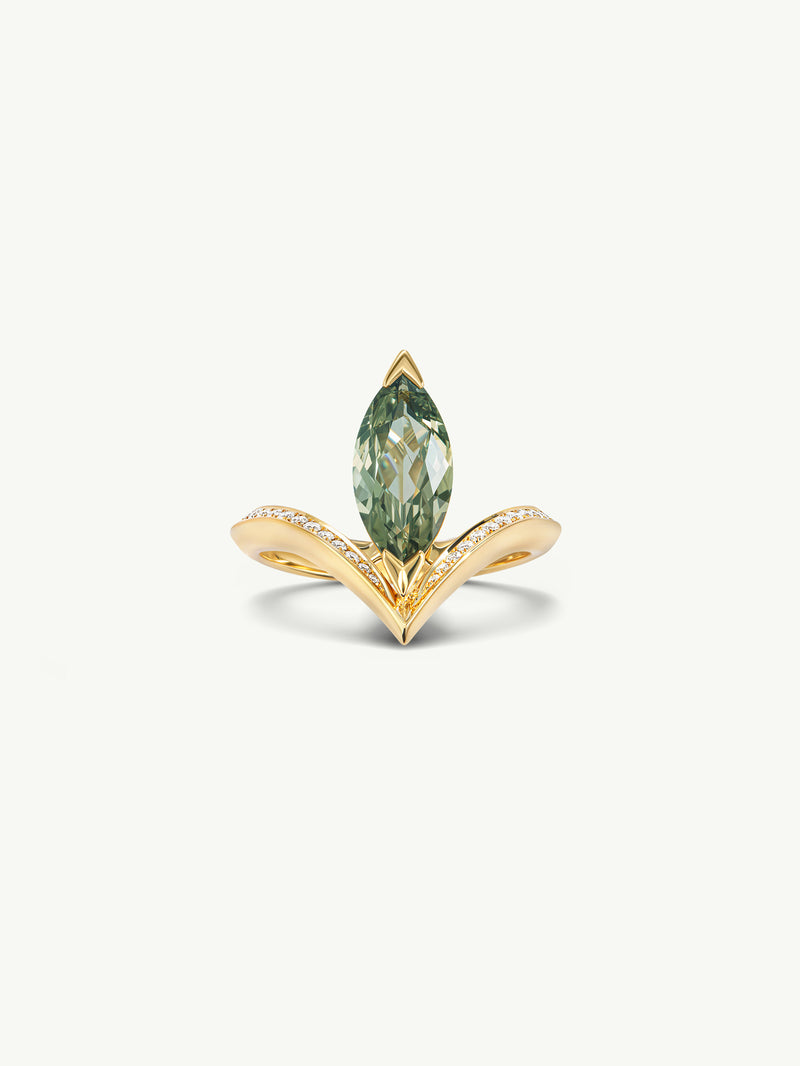 Yasmeen Ring with Brilliant Marquise-Cut Natural Green Sapphire In 18-Karat Yellow Gold