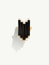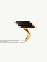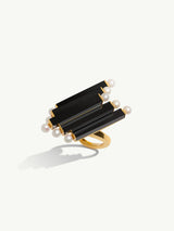 The Invidia Black Onyx Column & Pearl Ring by Angie Marei is exquisitely hand-crafted in 18-karat yellow gold and features black onyx and white pearls. This beautiful architectural ring combines the opulence and glamour of the Art Deco era with the marvelous jewels of the Ancient Egyptian royals.