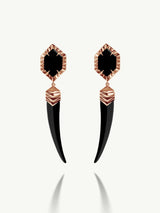 Alexandria Horn Talisman Drop Earrings With Black Onyx Agate In 18K Rose Gold