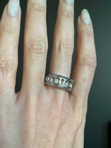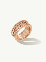 Spinning rings, also known as prayer rings or worry rings, originated from ancient Tibetan prayer wheels. This piece comprises two bands– an inner and center band that spins around. Spinning rings are believed to create a calm and meditative state for the wearer.