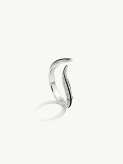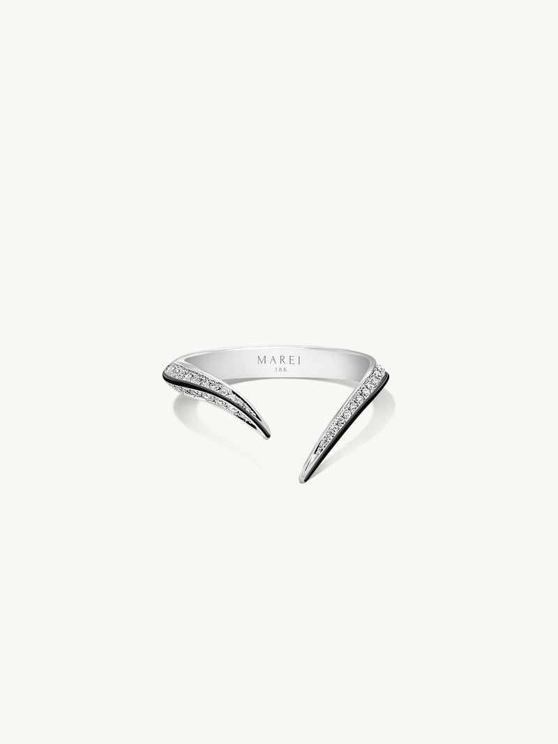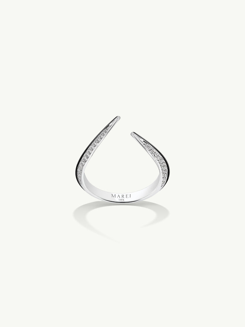 Ayla Arabesque Ring With Pavé-Set Brilliant White Diamonds & Enamel In 18K White Gold