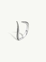 The Ayla Arabesque Ring by Angie Marei is a captivating piece that seductively wraps around the wearer's finger. This gorgeous ring is crafted from stunning 18-karat white gold and features sparkling pavé-set white diamonds that catch the eye and reflect the light perfectly. Detailed with black enamel.