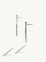 The Lilith Dagger Earrings by designer Angie Marei feature a sleek knife-edge design in 18-karat white gold, with pavé-set brilliant white diamonds that capture and reflecting light from all angles. These are must-have earrings for Fearless Femme Fatales to flaunt all day... into the night.