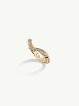 The Dorian Pavé-Set Brilliant White Diamond Ring by Angie Marei is designed to mirror an ocean wave held in suspension. This stunning piece is skillfully handcrafted in 18-karat yellow gold and encrusted with rows of glittering, brilliant-cut pavé-set white diamonds. Visualize the soft waves of the ocean as they bind together with the strength of the human spirit.