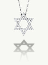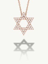 A timeless emblem of faith, identity, and divine protection, the elegant Star of David pendant necklace—crafted in lustrous 14-karat gold and adorned with brilliant pavé-set white diamonds. Each facet of the six-pointed star catches the light, symbolizing harmony between the spiritual and physical realms. Suspended from a delicate chain, this radiant piece is both a sacred talisman and a refined expression of personal style.