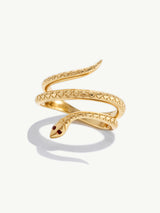 Immortal Coil Serpent Ring with Garnets