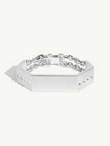 The sleek and Octavian Diamond ID Bracelet by Angie Marei features 8 scintillating brilliant white diamonds set in a solid sterling silver bracelet with a diamond-cut cable chain and fold over clasp.
