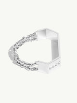 In sacred geometry, the 8-sided octagon shape is seen as two shapes coming together as one; a circle and a square. The ring symbolizes heaven, and the square represents the earth. The unification of these two energies creates an infinite connection. The octagon shape is often found in ancient buildings of worship as representing infinity and eternal life.- Sterling Silver .925