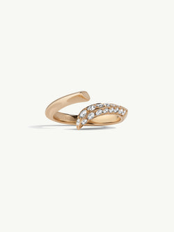 The Pythia Serpentine Twist Pavé White Diamond Wedding Ring by designer Angie Marei features two rows of sparkling brilliant-cut round white diamonds set in 18-karat yellow gold.
