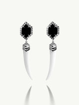 Alexandria Horn Talisman Drop Earrings With Black & White Onyx Agate In 18K White Gold