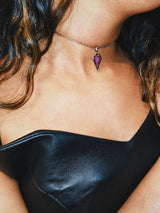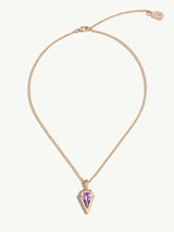 The Aphrodite Amulet Pendant Necklace by Angie Marei features a stunning purple Amethyst gemstone elegantly framed in a gorgeous pendant suspended from a diamond cut cable chain crafted entirely from solid 18-karat yellow gold - making it durable and perfect for everyday wear. The length of the necklace can be adjusted to be worn as a choker.