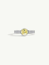 - Shown with a 1.00-Carat round brilliant-cut yellow diamond center stone