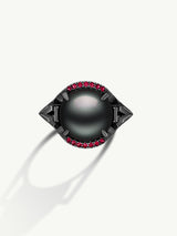 Isis Goddess Ring With Tahitian Black Pearl & Pavé-Set Brilliant Rubies In 18K Blackened Gold