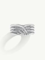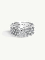 Strikingly elegant and statuesque, the Pharaoh II Pavé-Set Brilliant White Diamond Ring by Angie Marei is impeccably handcrafted from luxurious solid 18-karat white gold. This original design features a smooth, sculptural, incised surface that seductively wraps around the entire piece. Sparkling white diamond-accented edges unveil unexpected brilliance, fire, and scintillation.