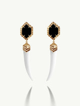 Alexandria Horn Talisman Drop Earrings With Black & White Onyx Agate In 18K Yellow Gold