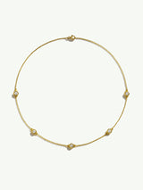 Elegant, timeless, and radiant—this classic diamond station necklace adds effortless sparkle to any look. Delicately crafted in 14-karat gold, it features five brilliant-cut natural diamonds, each meticulously bezel- or prong-set to accentuate its fire and brilliance. With a total carat weight of approximately 0.50, the diamonds are artfully spaced along a fine chain, creating a graceful shimmer that catches the light with every movement.