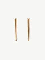 The Lilith Dagger Earrings by jewelry designer Angie Marei are handcrafted in luxurious 14-karat yellow gold. These earrings feature a sleek knife-edge surface capturing and reflecting light from all angles. Must-have earrings to flaunt all day... into the night.