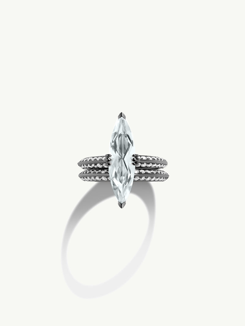 Pair this gorgeous diamond wedding ring with our Marei Engagement Ring with Marquise-Cut White Aquamarine In 18K Blackened Gold.