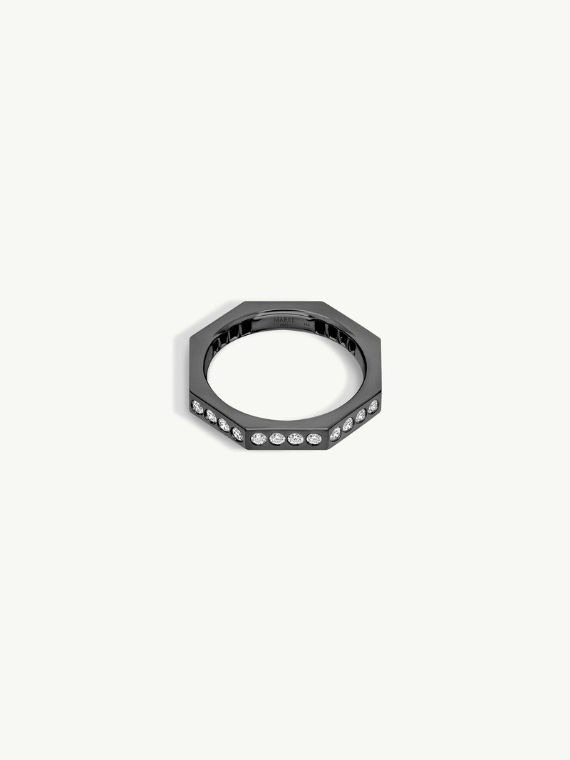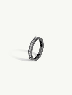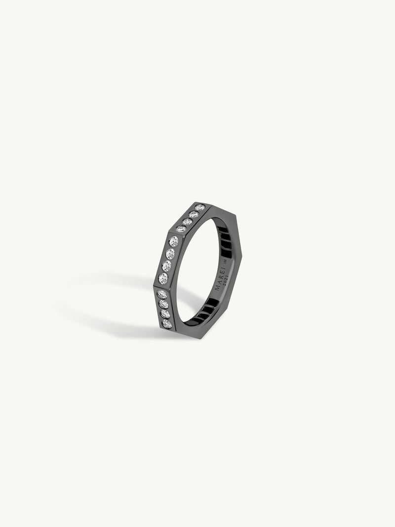 Signify your love with our sparkling Octavian Brilliant White Diamond Eternity Ring in luxuriously blackened 18-karat gold by Egyptian-Dominican jewelry designer Angie Marei.