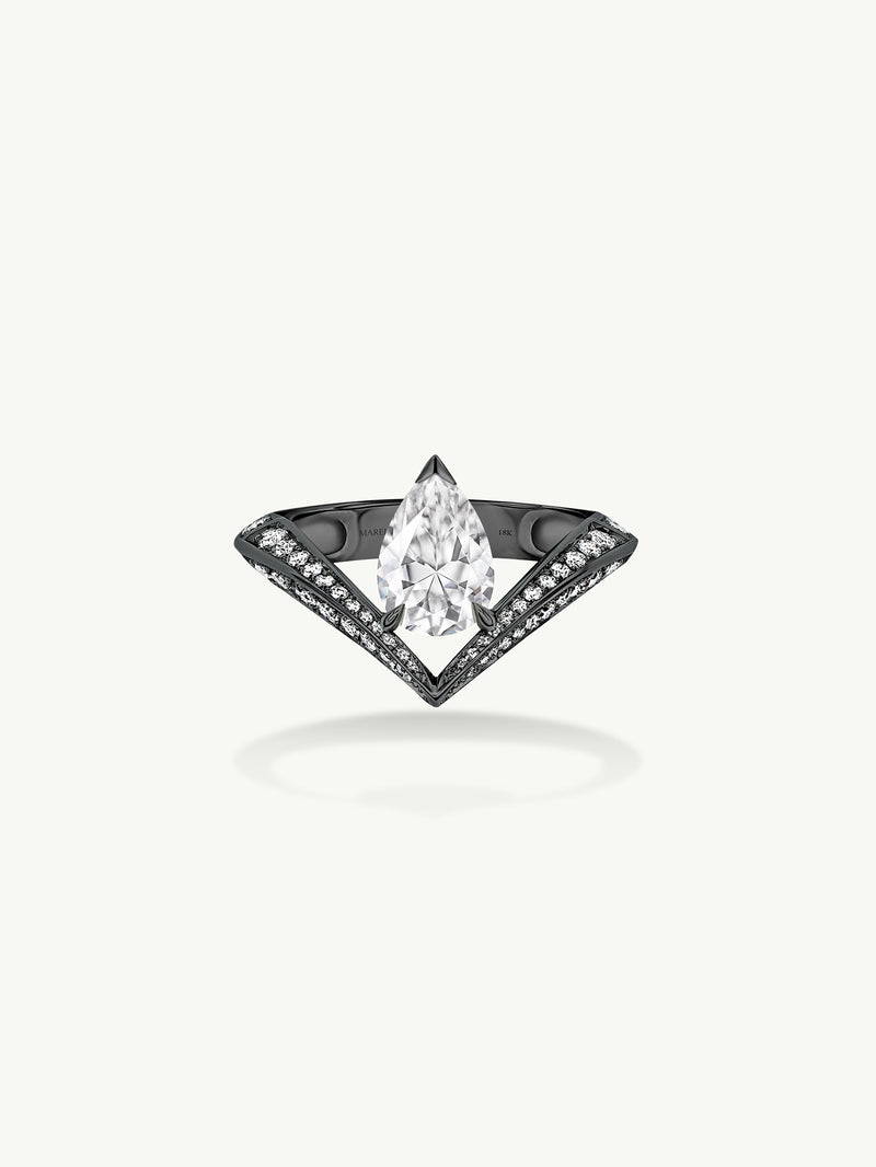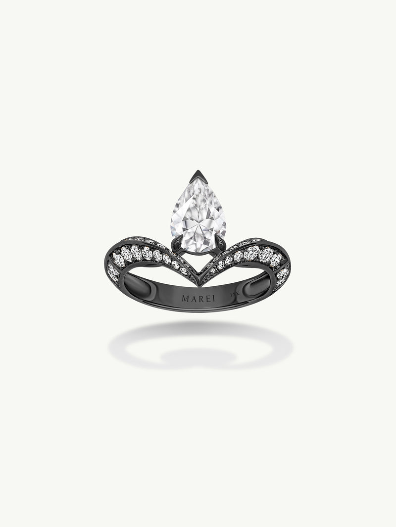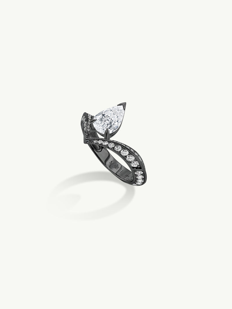 Dorian Floating Teardrop-Shaped Brilliant White Diamond Engagement Ring In 18K Blackened Gold