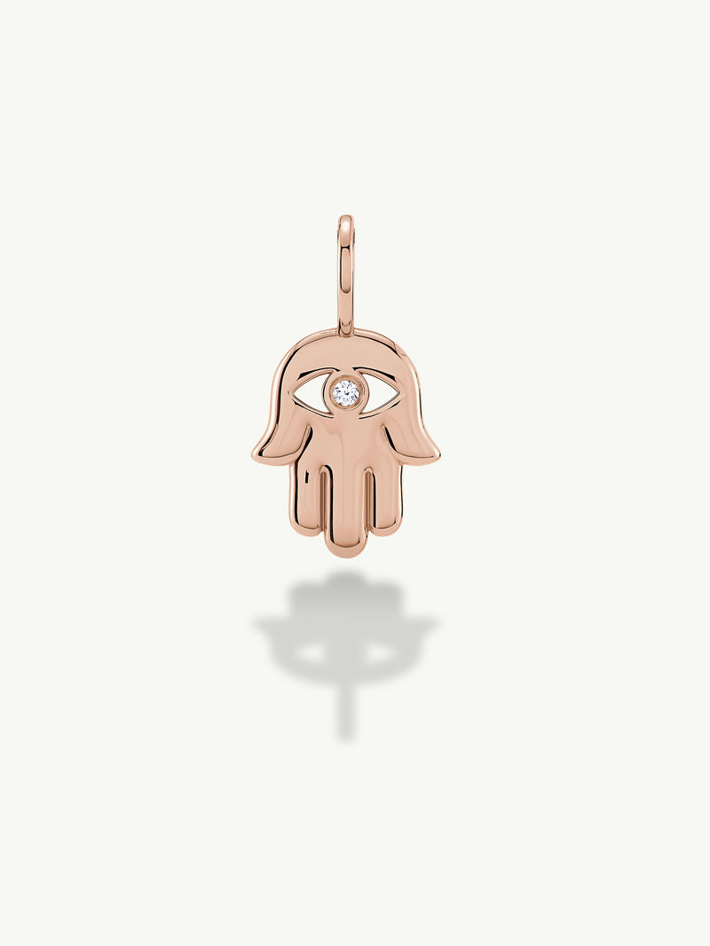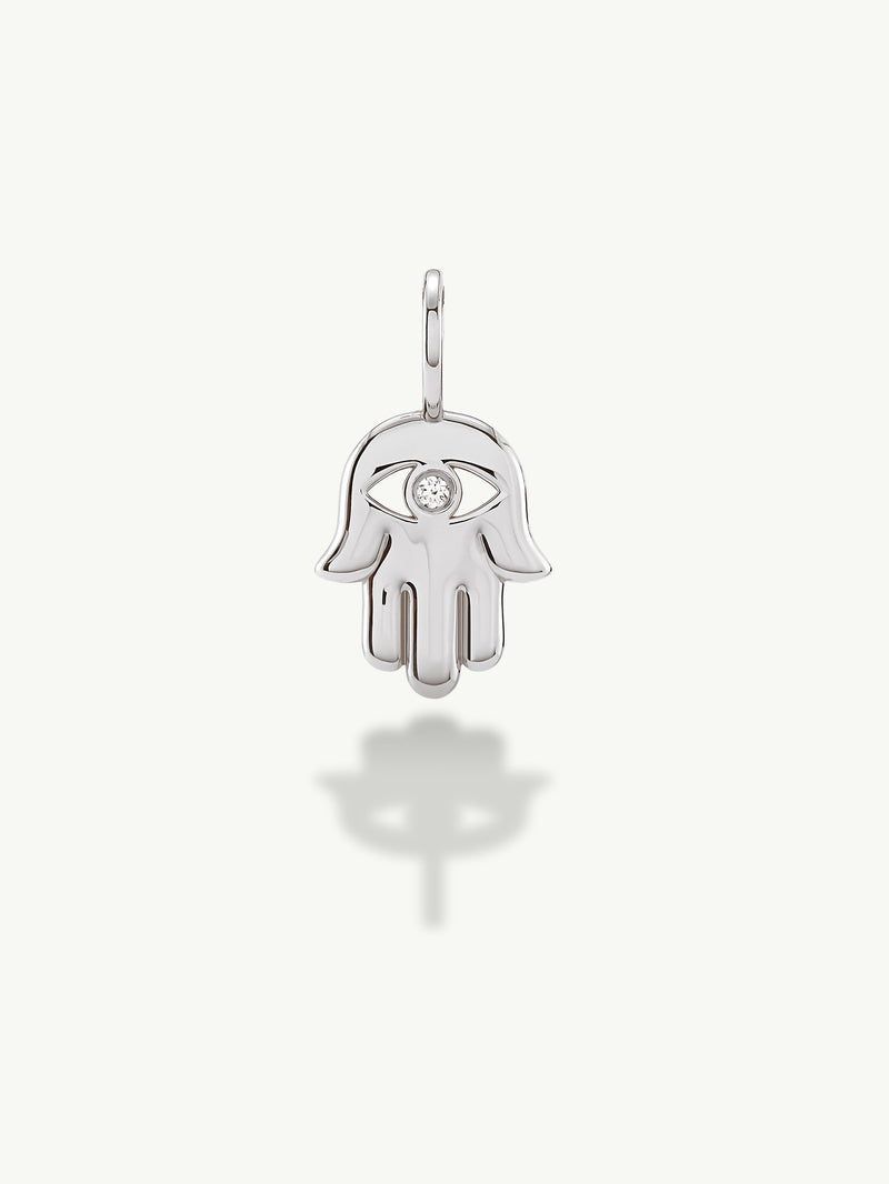 Hamsa Talisman Charm Pendant With Brilliant White Diamond, 0.02 CTW