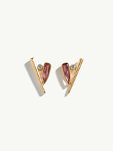 Our Lilith Dagger Earrings by Angie Marei channel her spellbinding energy through sleek, gleaming gold dagger bars that frame the face with bold elegance. Brilliant white diamonds shimmer like stardust against the metal, while vivid pink tourmaline gemstones ignite the design with a touch of fiery enchantment.