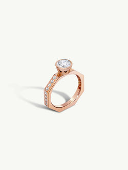 Octavian Lotus Engagement Ring With Round Brilliant-Cut White Diamond In 18K Rose Gold