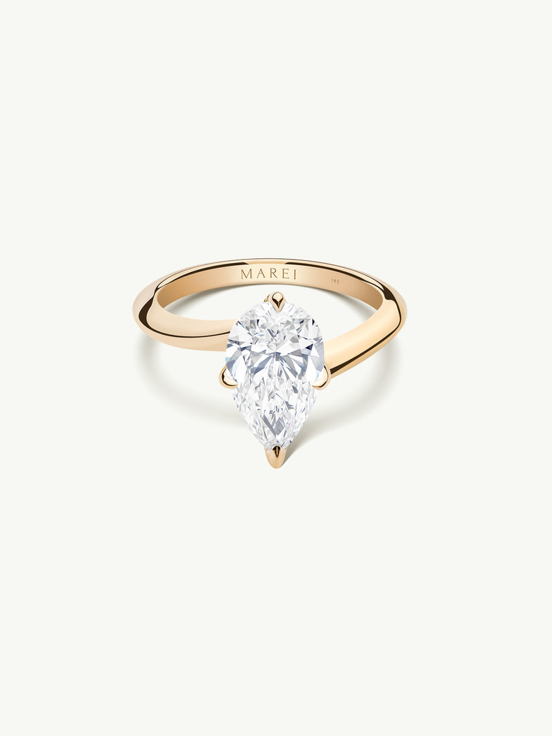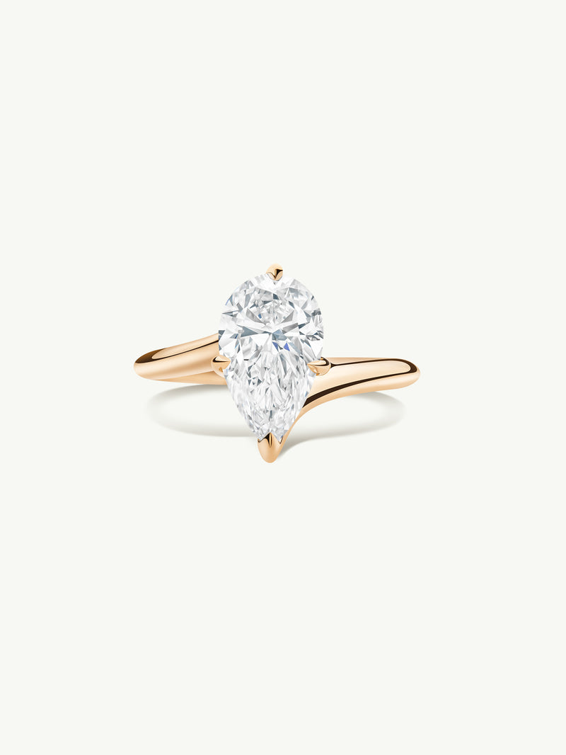 The Pythia Twist Pear-Cut Diamond Solitaire Engagement Ring by Angie Marei is a luminous masterpiece designed to make any woman feel like a goddess. A brilliant pear-cut white diamond radiates from its setting of sumptuous 18-karat yellow gold, exuding timeless elegance.