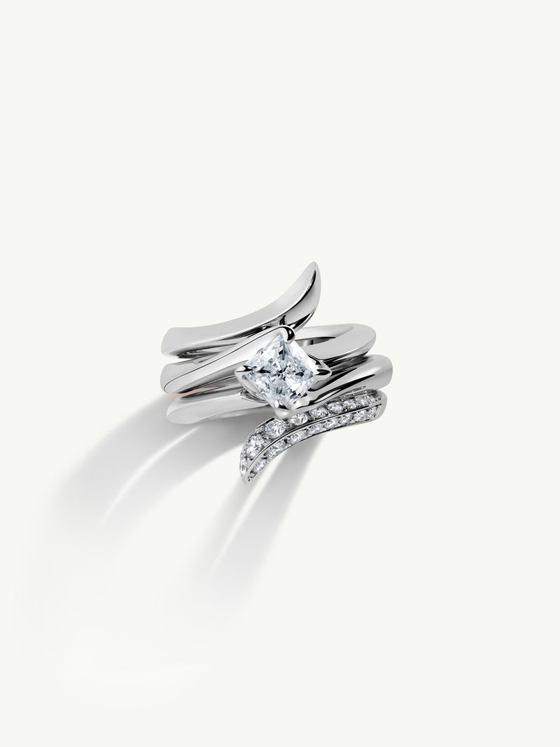 Pythia Serpentine Twist Solitaire Engagement Ring With Princess-Cut White Diamond