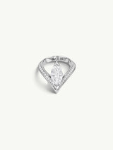 The Yasmeen Ring by Angie Marei is a breathtaking homage to the timeless elegance of the jasmine flower, masterfully fusing cultural richness with exquisite artistry. At its heart glows a stunning marquise-cut white diamond, its elongated shape reminiscent of a jasmine petal. This exceptional gem is elegantly cradled within an 18-karat white gold setting, adorned with shimmering white diamond accents, and finished with luminous white enamel. The design artfully mirrors the delicate embrace of flower petals, embodying the jasmine’s symbolism of purity, love, and grace.